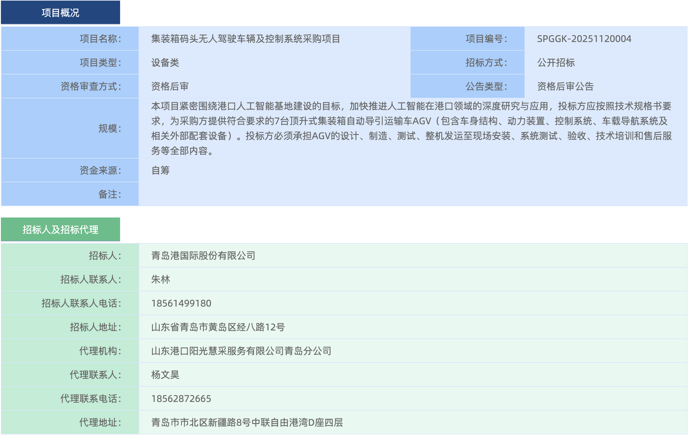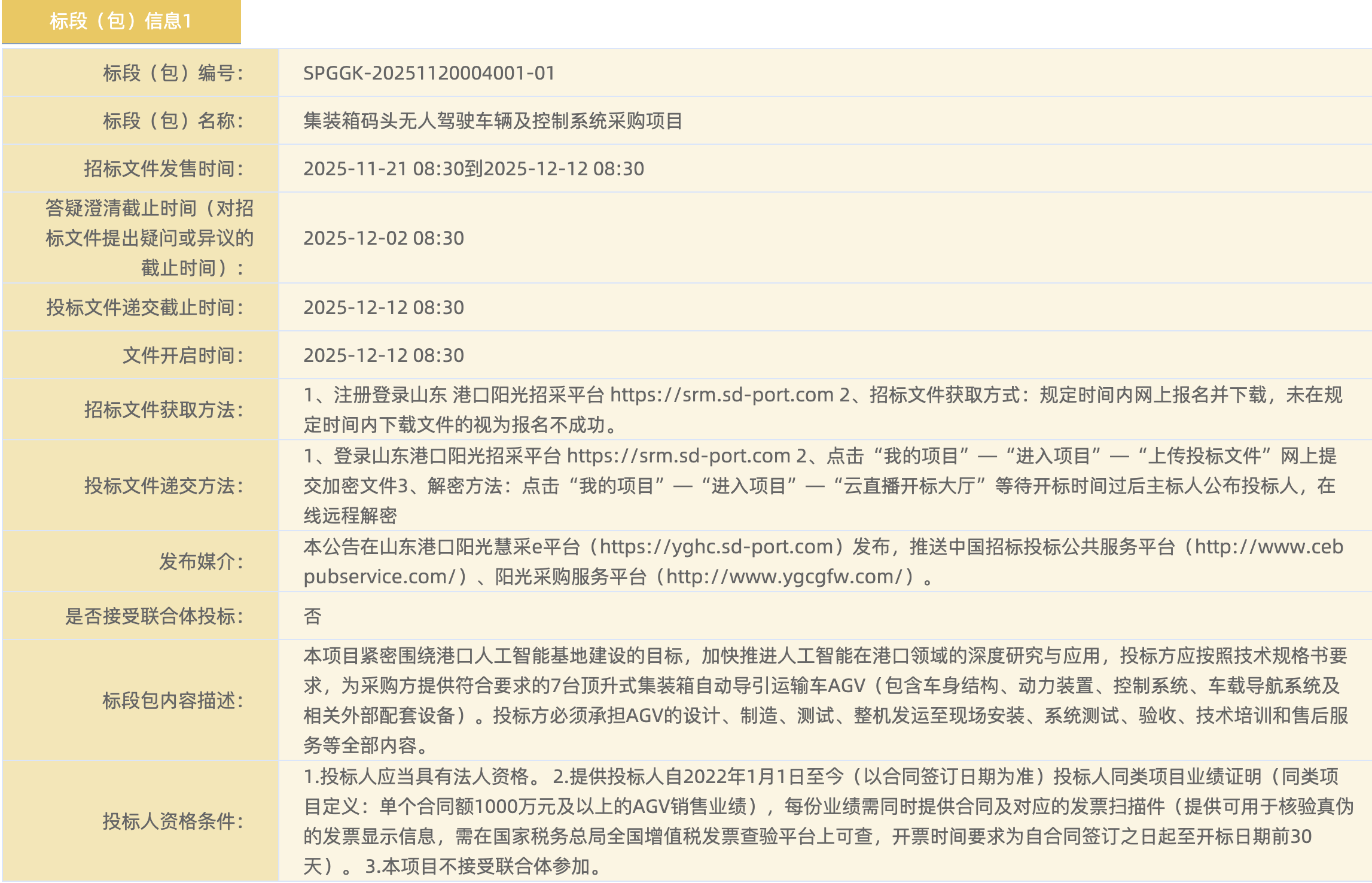 集装箱码头无人驾驶车辆及控制系统采购项目