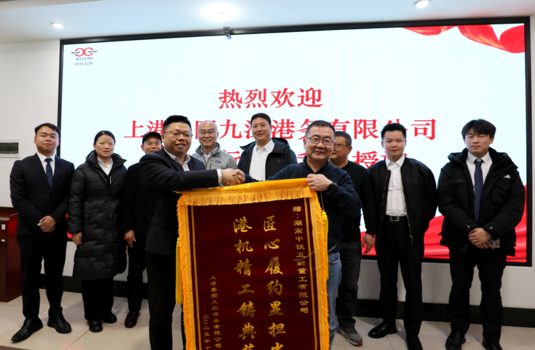 1月22日,上港集团九江港务公司领导莅临湖南中铁五新重工有限公司,专程向公司赠送锦旗,对五新重工在九江港项目展现出的专业水准与服务品质给予高度评价。这一面鲜红的锦旗,不仅承载着客户的认可与信赖,更是对五新团队专业精神与责任担当的最好见证。