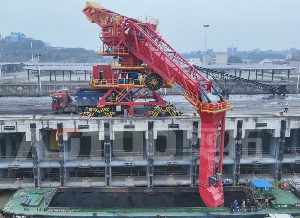 After six years of dedicated research and development and 12 months of physical operational testing, the AOTUO engineering team has finally overcome numerous technical challenges related to structure, materials, and processes. This effort has culminated in the launch of the high-end "Cement Clinker (Coal) Screw Ship Unloader and Supporting Transfer System," capable of unloading cement clinker. The system comprehensively addresses long-standing technical and operational issues in port handling, such as severe equipment wear, high energy consumption, significant dust generation, and short service life during the unloading and transfer of high-hardness bulk materials like cement clinker, coal, and ore. Additionally, the equipment incorporates intelligent obstacle avoidance and real-time condition monitoring functions, enhancing both safety and significantly reducing maintenance costs.