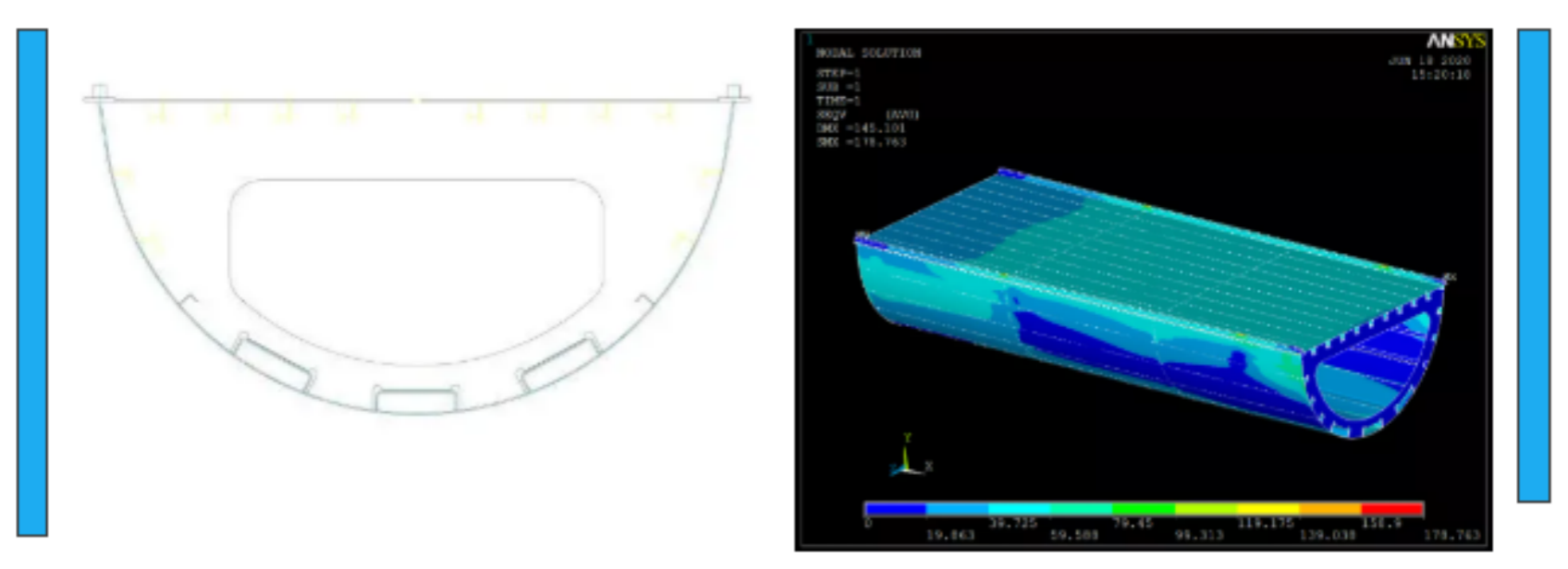 这种理念对主梁结构进行了优化,主梁主要由上面板、位于上面板下方的承轨梁腹板和与腹板对接的圆弧形板组成,形成一个近似于半圆形截面的大梁结构。