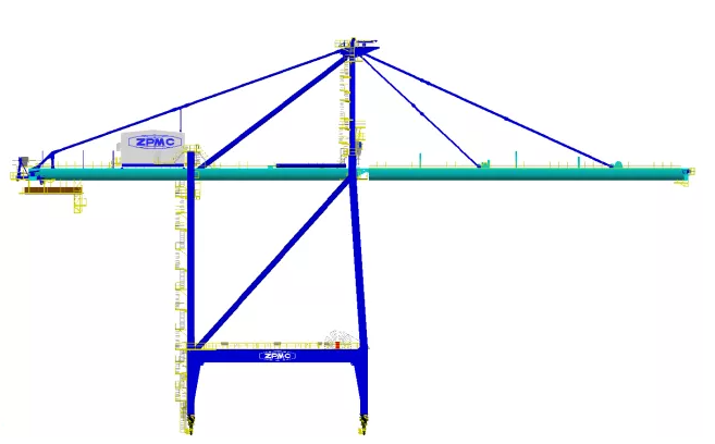 因圆型截面在风力系数方面优势明显,该机型可有效降低工作状态时大梁所受的侧向风力,改善大梁侧向变形情况,有利于提高小车在前大梁时的对中作业效率。同时,该机型对于设备锚定状态下的轮压改善更加明显,非工作风速越大,效果越佳;对于轨距较小的岸桥,风力对整机轮压的影响更大,采用该机型的优势也就更大;通过结构优化,可进一步降低整机重量和风载,对于各机构的选型,尤其是大车电机(风力可以减少10%左右)等,都具有较大优势;也可在一定程度上降低新建码头的成本,尤其对于环境风速较高的地区。